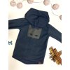 Stylová dlouhá mikina má spíše volnější střih, je ušita z denim warmkeeperu, uvnitř je telpoučký šedý plyš. Mikina je na zip, vpředu má kapsy a je delší. Na zádech má mikina aplikaci masky a lemy kapes jsou z černé koženky.