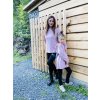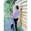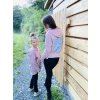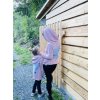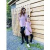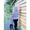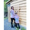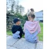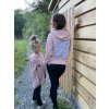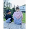 Stylová kratší mikina má spíše volnější střih, je ušitá ze světle růžové teplákoviny, která se na okrajích třepí. Mikina má kapuci a vzadu obrázek, který zvlášť kreslíme, takže každý je originál.