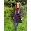 Stylová dlouhá mikina má volnější střih a je ušitá z černé počesané teplákoviny. Mikina má kapuci a po stranách zipy, který slouží k tomu, že můžete nakojit nebo jen jako okrasa. Mikina je doplněná pásky s nápisem JAKOMAMACZ.