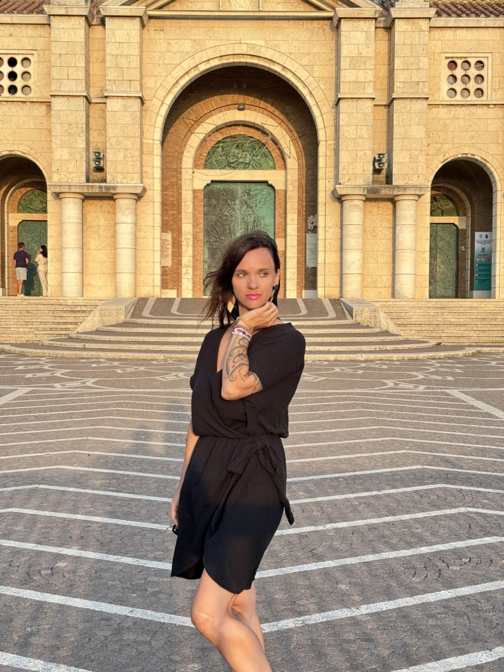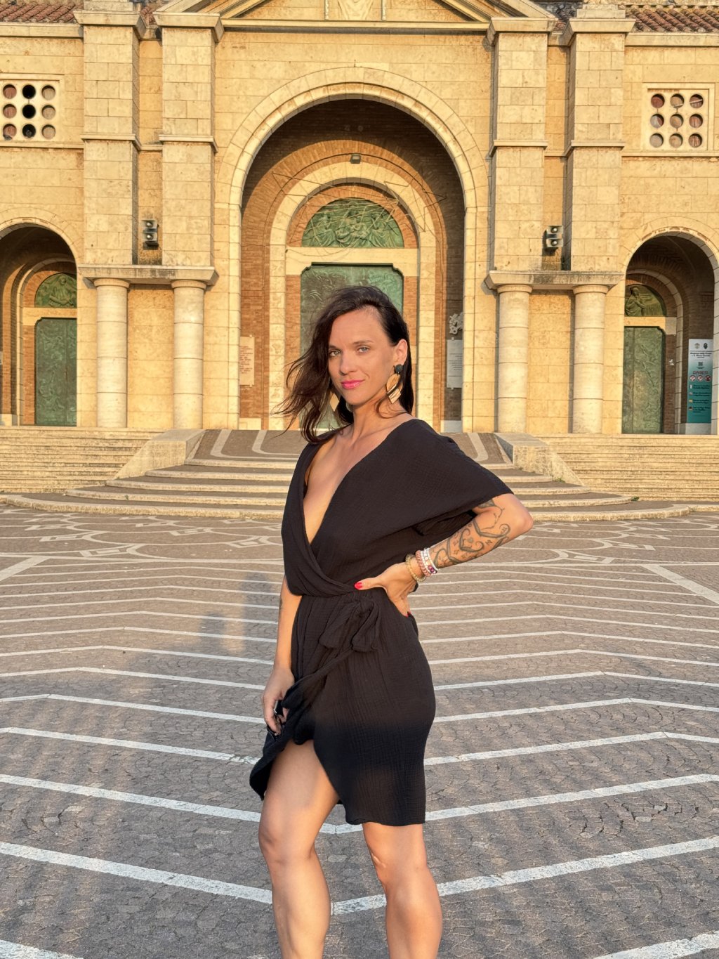 Přední díl je překřížený. Šaty jsou velmi pohodlné a zároveň ženské.