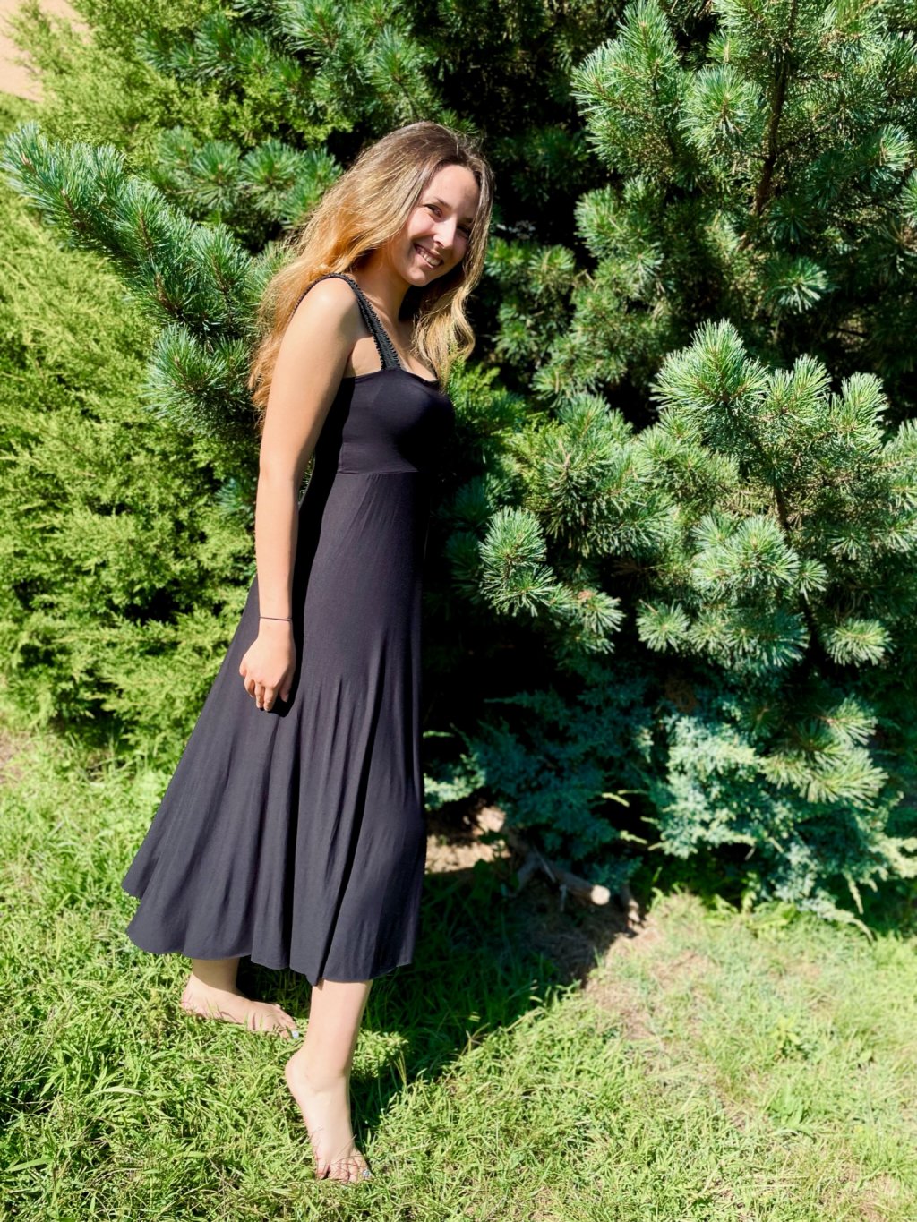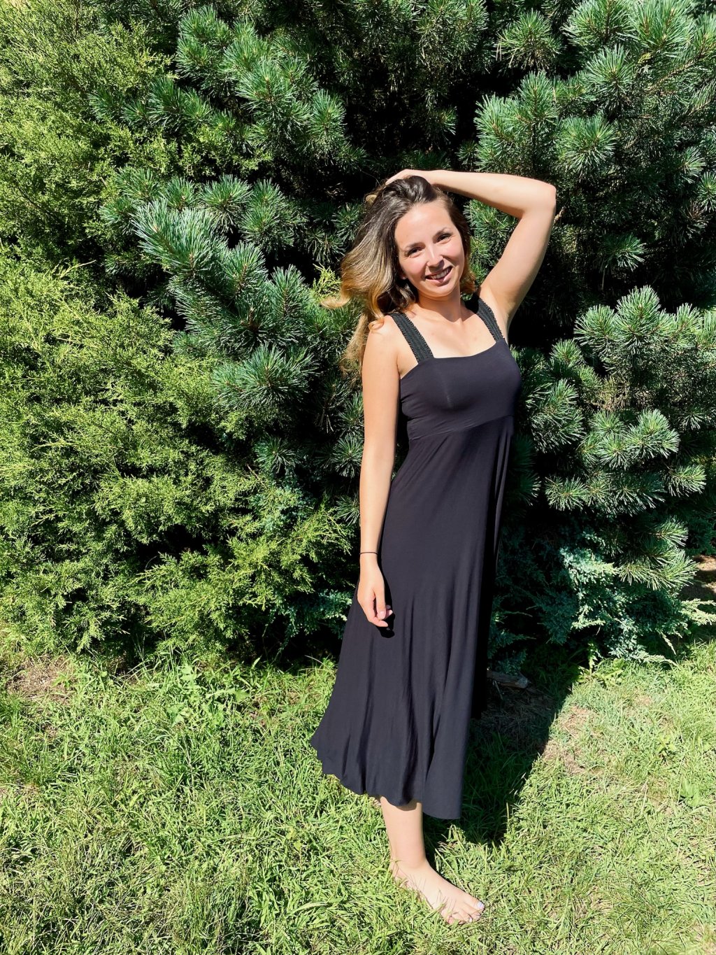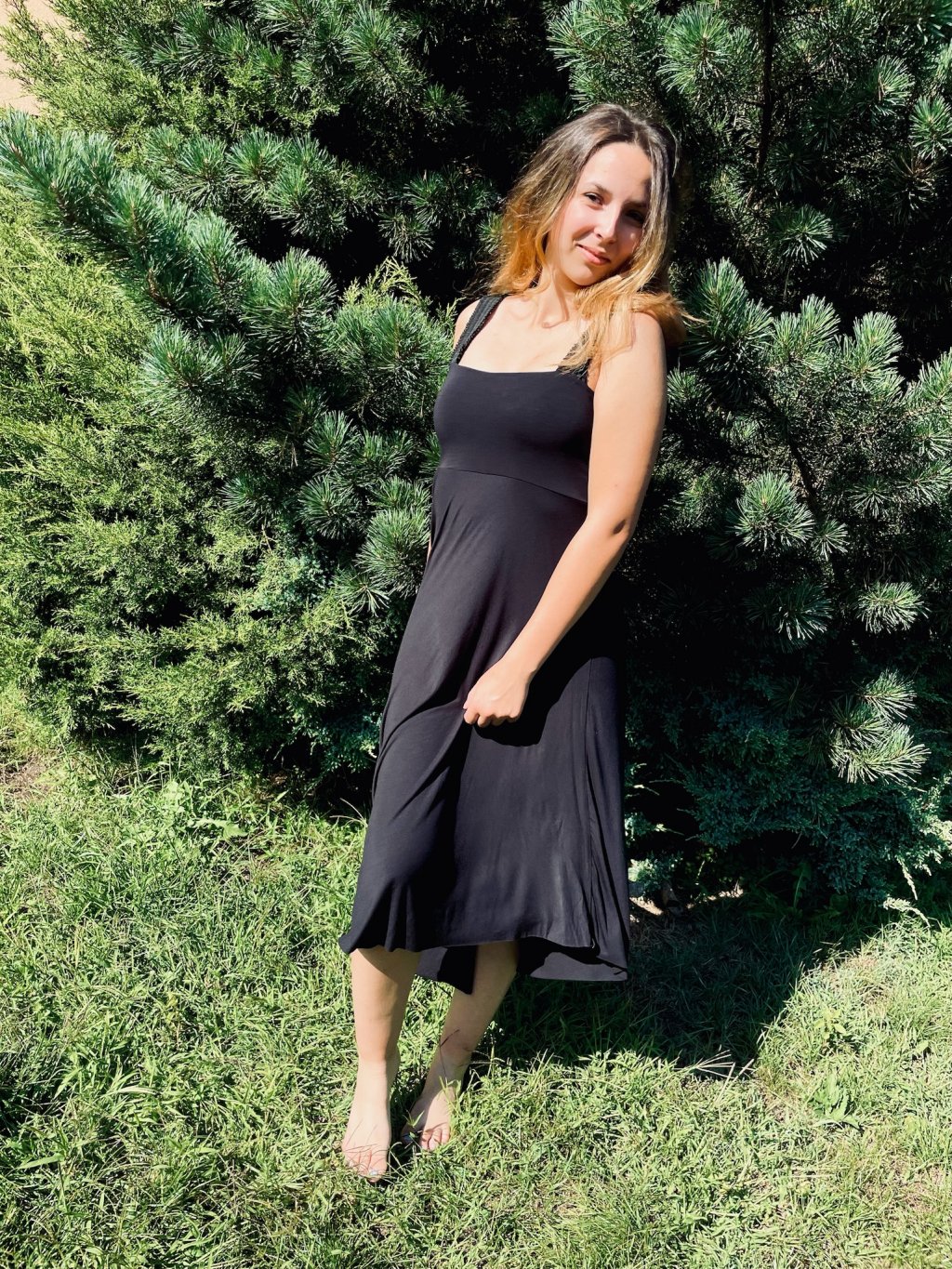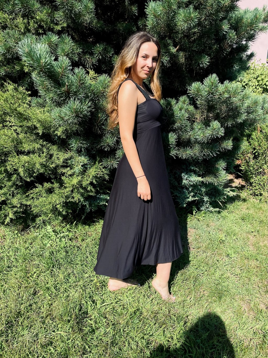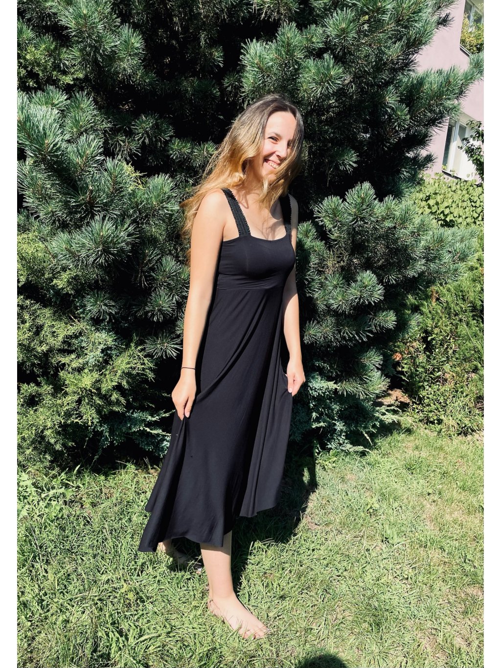 Šaty jsou ušité z přijemného, splývavého viskózového úpletu.