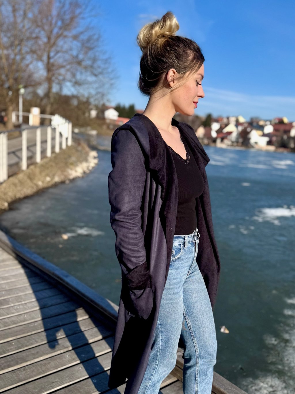 Použili jsme vysoce kvalitní koženku, která je poddajná, příjemná na dotek a vypadá luxusně. Zapomeňte na tuhé a nepohodlné materiály – tento kabát se přizpůsobí vašemu pohybu.