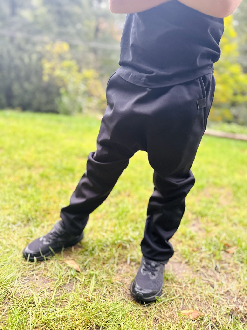 DĚTSKÉ ROSTOUCÍ SOFTSHELLOVÉ baggy s fleecem BASIC BLACK
