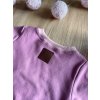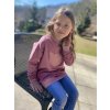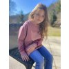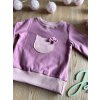 Mikina ve tmavší růžové barvě. Je ušita z příjemné teplákoviny bavlna/elastan a doplněná béžovým žebrovaným ribem, ze kterého je na hrudníčku udělaná aplikace kočky.